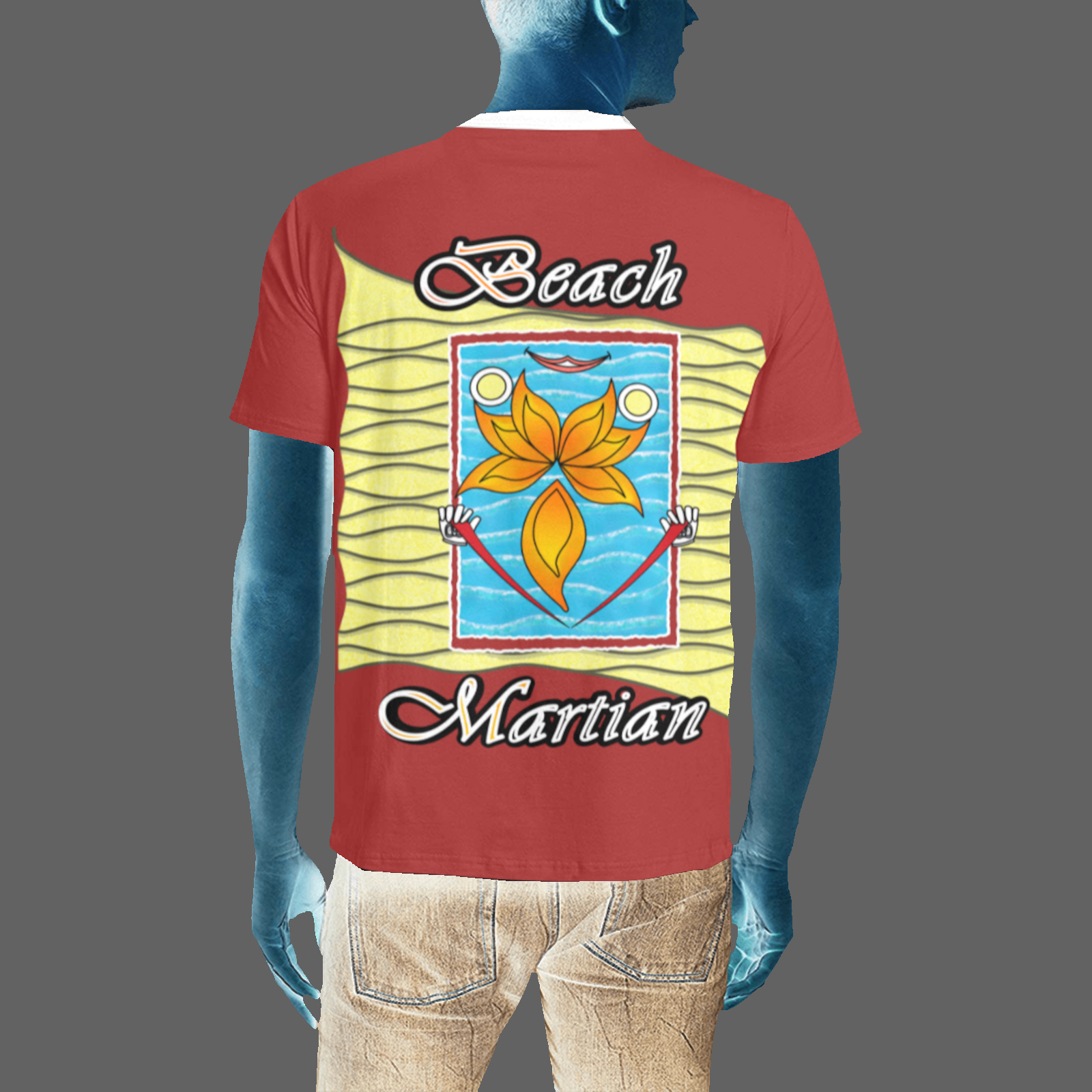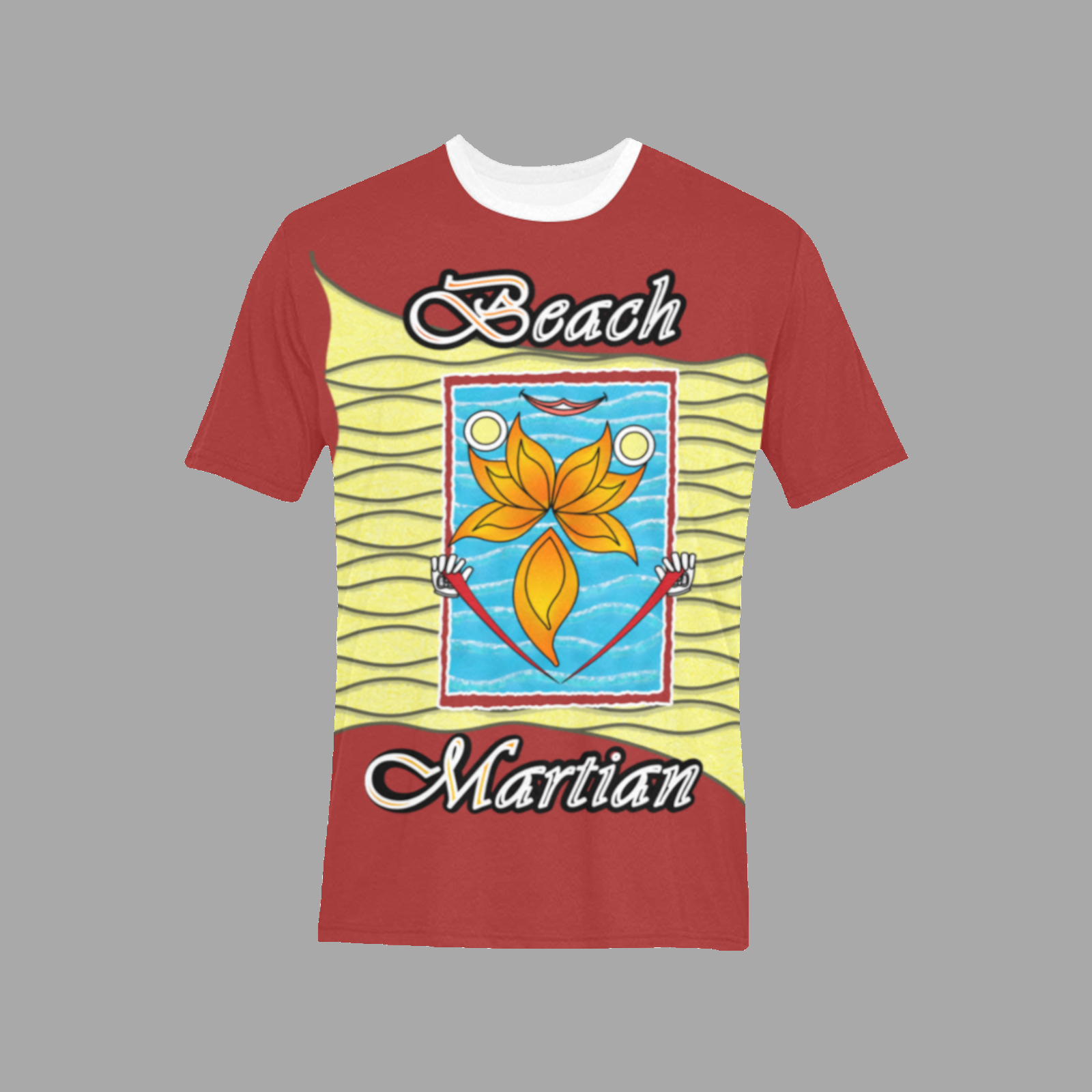8.47 Oz / 237 g. 100% Polyester. Personalized all-over print T-shirt for men.