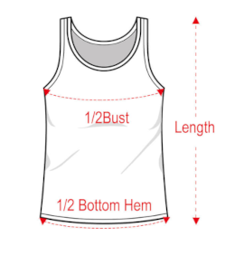 Sizes: S, M, L, XL, 2XL. Calculate your size from the measurement chart below please.